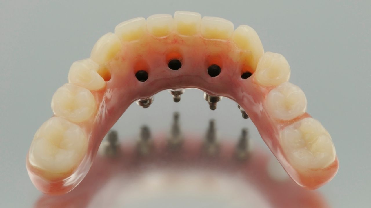 Esses implantes funcionam como raízes artificiais, proporcionando uma base sólida e estável para a prótese. Por outro lado, a dentadura convencional é apoiada apenas na gengiva e pode ser menos estável, podendo se mover ou causar desconforto durante a mastigação, ou fala.